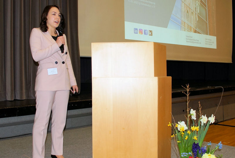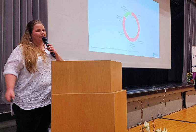 Tabea Bickel hat sich in ihrem anschließenden Vortrag dem praxisorientierten Teil des Einleitungsthema gewidmet: die Herangehensweise einer Klinik beim Thema Nachhaltigkeit, die verschiedenen Möglichkeiten zur Einführung und vielfältigen Umsetzungen, reale Alltagsthemen mit Bezug auf Nachhaltigkeit und die positiven Ergebnisse sowie Erfolge.