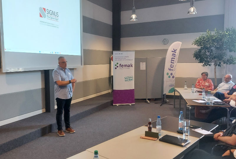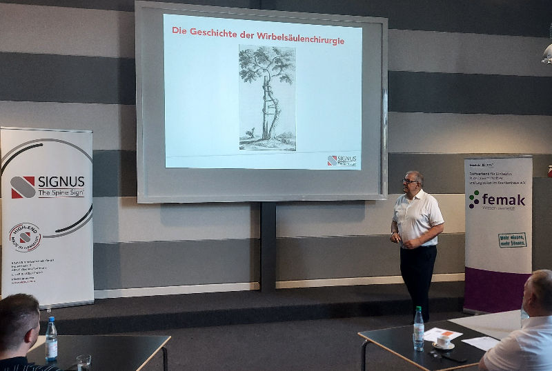 Im Rahmen einer kleinen Anpassung an das Programm hat nach der Begrüßung und Eröffnung des Fachforums durch Adrian Reeck, Mitglied des Geschäftsführenden Bundesvorstand von femak, Uwe Siedler durch seiner Keynote alle Anwesenden mit einem kurzen geschichtlichen Abriss zur Wirbelsäulenchirurgie von den ersten Anfängen vor Hunderten Jahren bis zu den heutigen Spezialisierungen und Möglichkeiten abgeholt und auf die folgenden Themen eingestimmt.