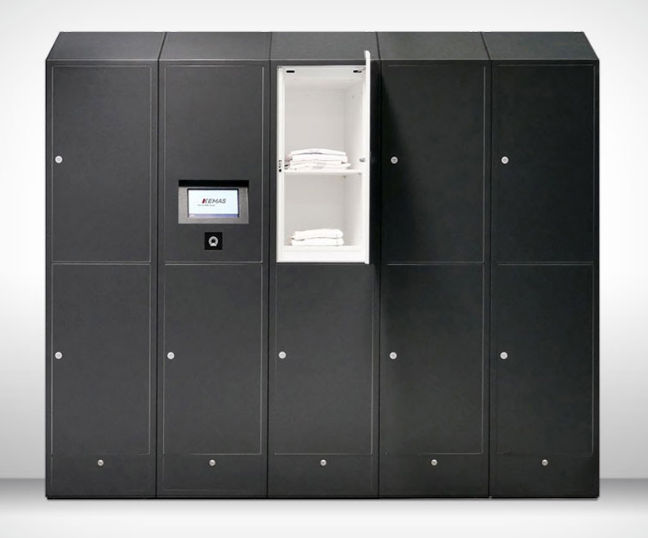 Dezentrale Schranklösung: Intelligente Wäscheschränke mit Touch-Display und RFID-Lesetechnik ermöglichen flexible Ausgaben an verschiedenen Standorten.