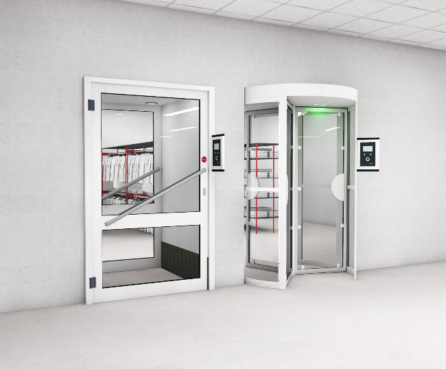 Zentrale Raumlösung: Der Wäscheausgaberaum wird zum intelligenten Depot – Mitarbeitende erhalten über eine Zutrittskontrolle Zugang, die Entnahme wird per UHF-RFID dokumentiert. So kann ohne zusätzliche Personalbindung rund um die Uhr hygienisch einwandfreie Kleidung bezogen werden.